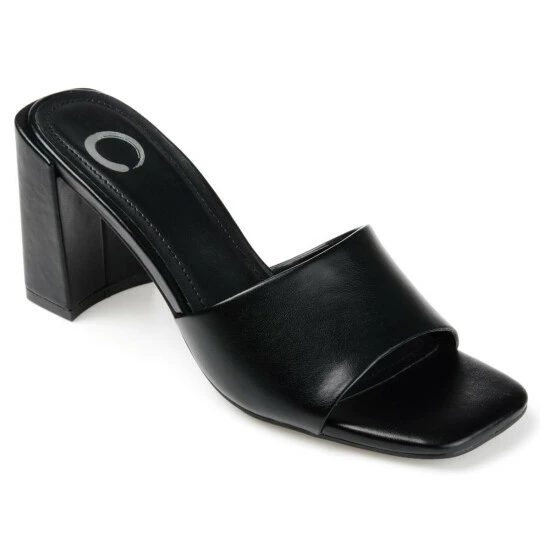 A covered half-block heel and square-toe, what could be more divine? The Alisia by Journee Collection is topped with a banded strap-shaped with vegan leather. A padded footbed lines the insole so you can walk as fiercely as you look.