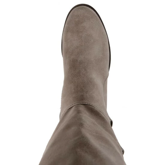 If you love a good riding boot, then youโll love the Carly boot by Journee Collection. This boot has such a different look to it with the zig zag lace detail. Itโs so quirky and can easily spice up any winter outfit. This boot also features an almond toe shape and a distressed coloring.