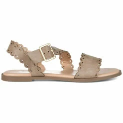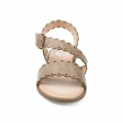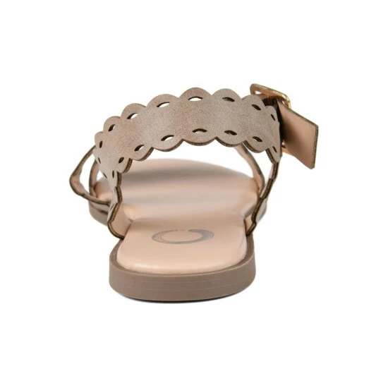 The scalloped edges and cross-strap style on the Aubrinn will make just about anyone swoon. This gorgeous sandal features unique details, like a laser-cut design on the faux leather upper and a square buckle.