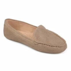 Pull on comfy style with comfort sole loafer shoes by Journee Collection. These shoes feature faux suede uppers with decorative laser-cut pinhole texture. Comfort-sole footbeds provide extra comfort and raised textured outsoles complete the design.
