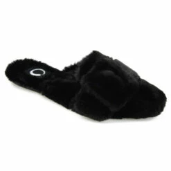Staying in? The Eara slipper by Journee Collection is sure to be your favorite lazy day companion with its slip-on silhouette and faux fur uppers lined with a cushioned footbed. A sassy buckle detail and square-toe finish the design for a little something “extra.”