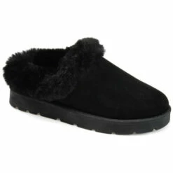 Time for some self-care? The Whisp by Journee Collection is a perfectly cozy slipper with its cushioned footbed and plush fur trim. A sturdy bottom sole finishes this vegan leather design, so you can wear them on a quick errand or out to the mailbox.