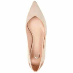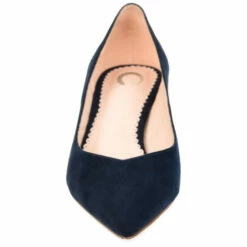Add a beautiful addition to your closet with the Goldie kitten heel by Journee Collection. This adorable heel features a soft faux suede material with a cut-out design on the heel. The pointed toe shape and the angled design at the toe complete this look.