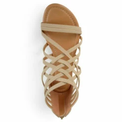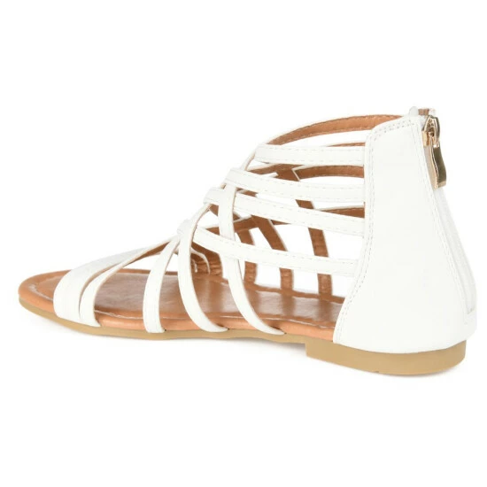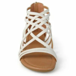 Show off the best Boho look this season with strappy flat sandals by Journee Collection. Intricate straps overlap and create a basketweave design for a decorative appearance, and closed back heels feature zipper detail to finish the look.