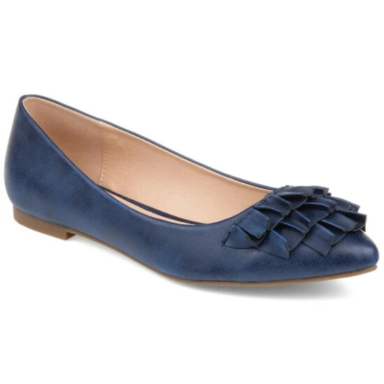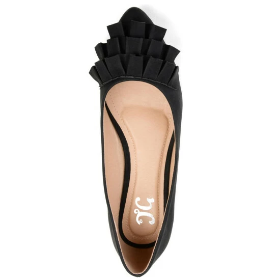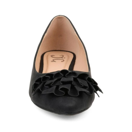 Step into chic style with the ballet flat by Journee Collection. This shoe features a classic pointed toe style with a ruffled design. The outsole is a beautiful faux leather fabric that keeps its silhouette shape. It’s the perfect flat for any occasion.