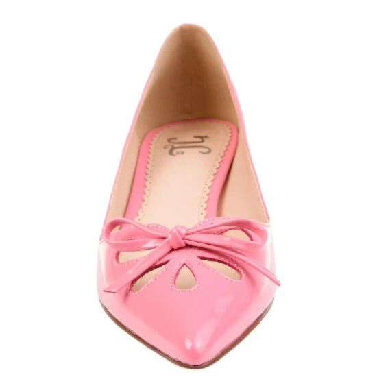 Feel like a queen in the Lutana kitten heel by Journee Collection. This pointed toe beauty has a beautiful bow accent and a detailed cut-out design on the toe. The kitten heel perfectly finishes off the look.