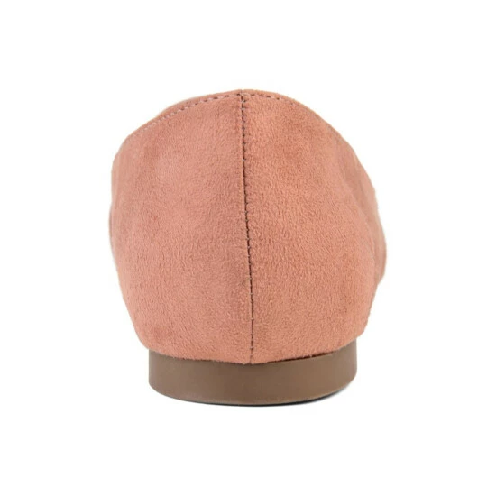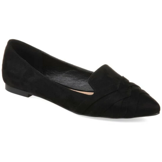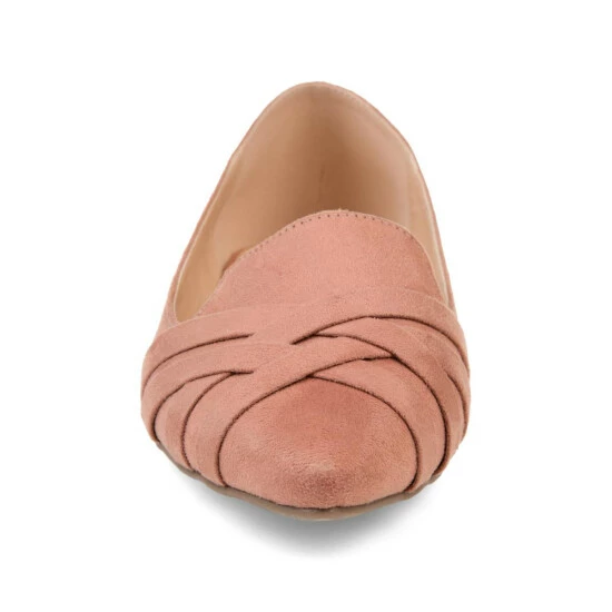 Step into a new style with the Mindee flat by Journee Collection. This shoe features faux suede material and has the perfect amount of stretch to it. The faux suede blend of the criss-cross pattern highlights this design, and the pointed toe adds the perfect touch.