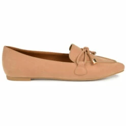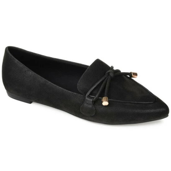 These wear-it-everywhere loafer flats by Journee Collection feature soft vegan leather and a pointed toe with stitched details. The Muriel is a smart contemporary look topped with a bow tassel accent for a sophisticated finish. We’ve added a cushioned insole for all-day comfort to the Muriel, and it just might be the most relaxed professional shoe ever.