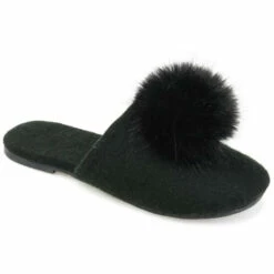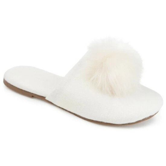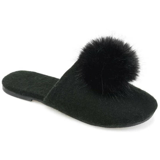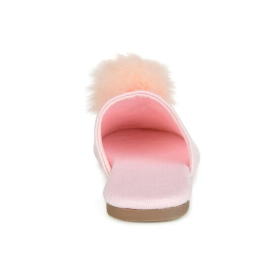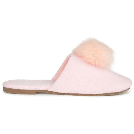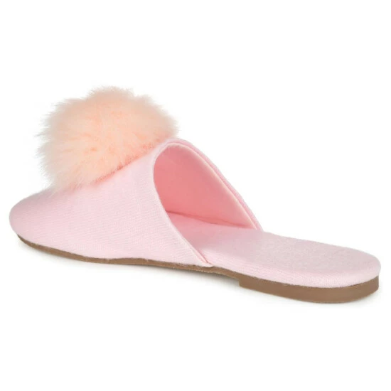 A pompom accent lends a playful look to this backless slipper. The Nightfall by Journee Collection is a warm fabric slipper with a round-toe silhouette. This lightweight design is finished with a durable outsole and an oh-so-soft cushioned footbed.