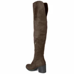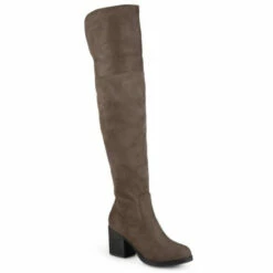 Step into the chicest style this season with over-the-knee boots by Journee Collection. Top stitched faux suede uppers rise over-the-knees for a sleek style. Faux woodgrain outsoles and block heels finish the look.