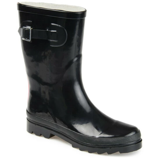 Step into puddles, snow, and walk through the rain in the Seattle rain boot by Journee Collection. This mid-calf rain boot is the perfect amount of rubber you would need in a boot. The rubber material is flexible and only goes up mid-calf for a chic look. The water resistant material and buckle detail complete this trendy rain boot.