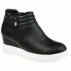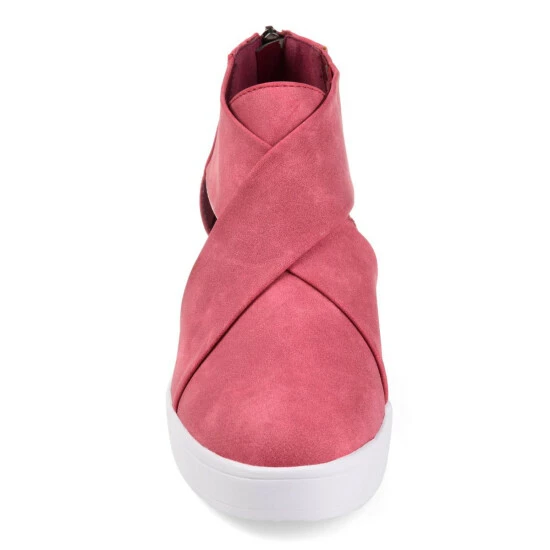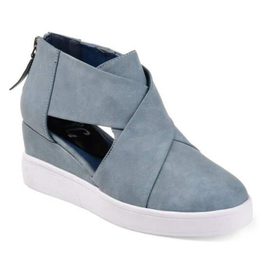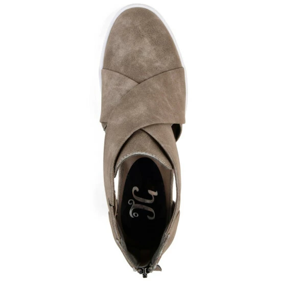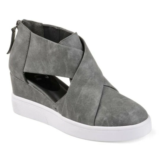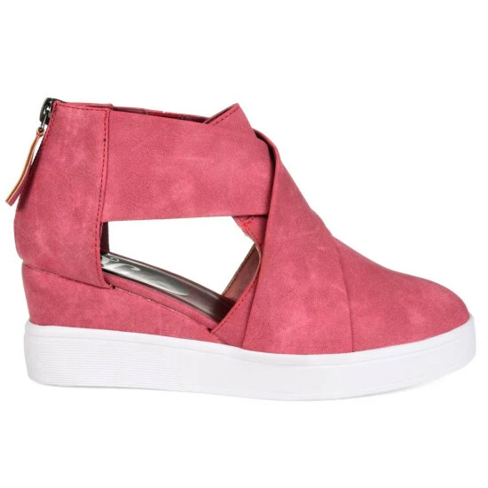Look effortlessly cool in fashion sneakers from Journee Collection. Soft faux leather uppers display a crisscross design on the vamps and stylish D’Orsay cut-outs at the sides. Thick outsoles and wedge heels create stylish lift to finish the look.