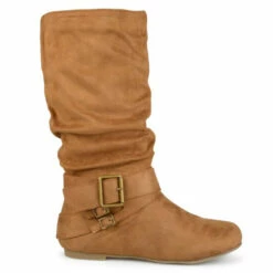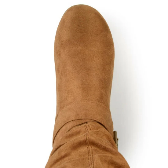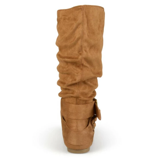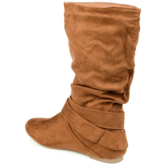 Express your style this season in flat buckle boots by Journee Collection. These fall boots feature premium faux suede uppers that rise mid-calf. Classic round toes and strappy detail with varying buckles accent the ankles to complete the look.