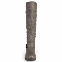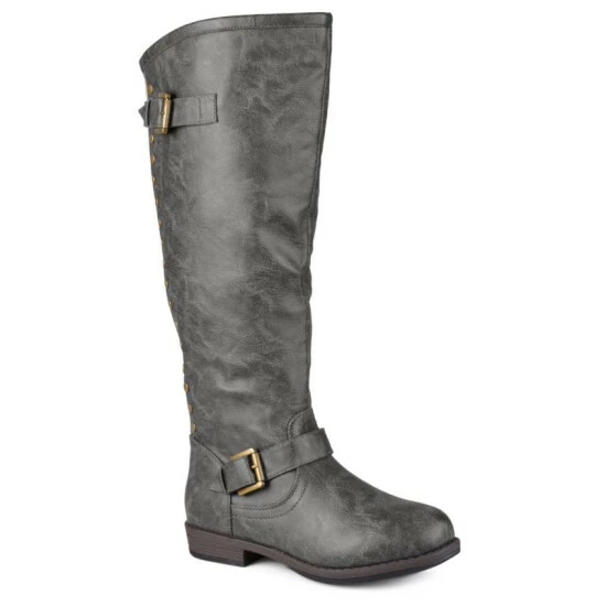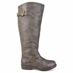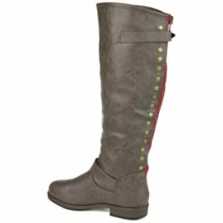 Set the trend this season in studded riding boots by Journee Collection. These chic boots feature premium faux leather uppers that rise to a knee height and feature a back zipper with stud detail.