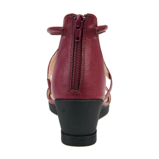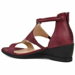 This sandal style wedge is the perfect new addition to your summer closet. The Trayle wedge by Journee Collection features an open toe design and a rubber wedge. The faux leather and caged design adds a sense of high-class. The ring ankle strap completes the unique design.