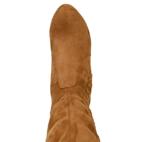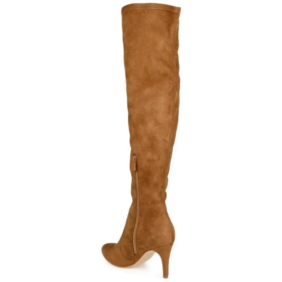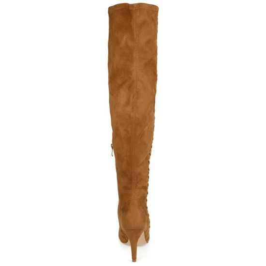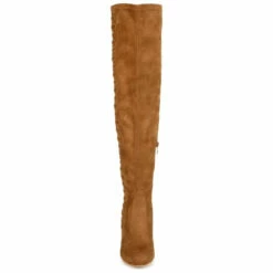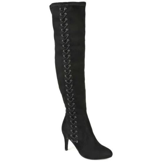 Surve up sass and class with the Abie boot by Journee Collection. Soft vegan leather uppers rise above the knees, detailed with a vintage-inspired lace-up design with metal accents. A covered high heel and a 4 mm Tru Comfort Foam insole complete this over-the-knee style.
