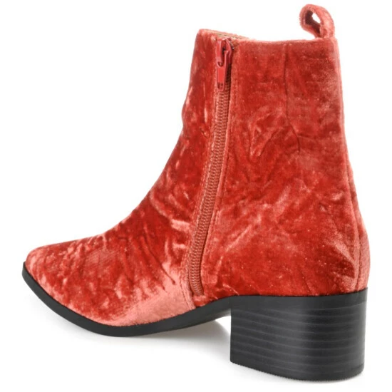 Boldly finish your favorite ensembles with the Aqua bootie by Journee Collection. These pointed-toe booties feature soft crushed velvet fabric with a lace-up design at the ankle. A stacked block heel adds a lift and contrast to the style, and a 4 mm Tru Comfort Foamโข insole makes them fit perfectly.
