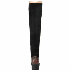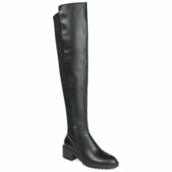 Embrace your bold side in the Aryia boot by Journee Collection. Textured vegan leather uppers rise above the knees, detailed with a stretch gore accent and inside zipper. A chunky stacked heel and a 4 mm Tru Comfort Foam insole complete this over-the-knee style.