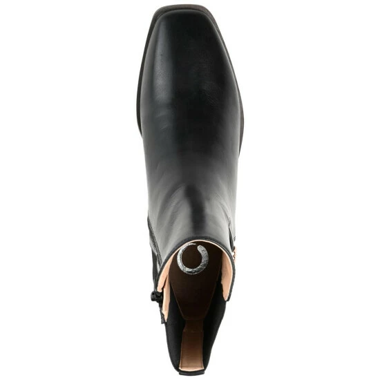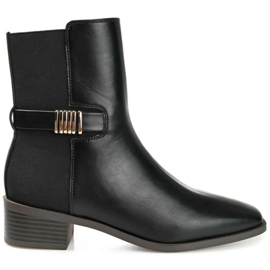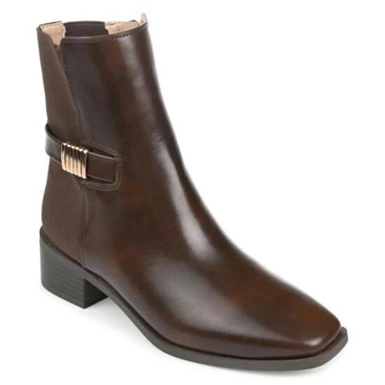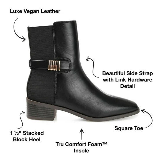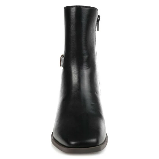 Fall fashion was never so easy than with the Aubrie bootie by Journee Collection. This square-toed style features a smooth zipper entry and a strap accent with hardware details for a vintage look. Supple vegan leather and our signature 4 mm Tru Comfort Foam footbed create a comfortable fit.