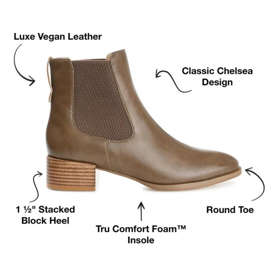 A fall go-to every minimalist needs, the Chayse booties by Journee Collection. This classic Chelsea silhouette features stretch gore at the ankles and a 4 mm Tru Comfort Foam insole for comfort and support. Vegan leather and a round-toe finish this sleek design.