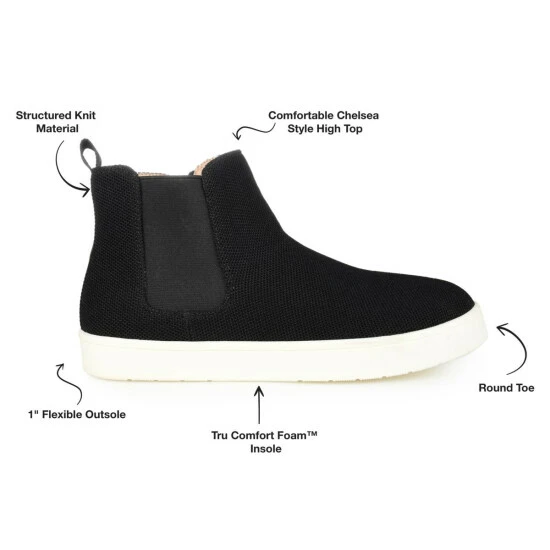 Step aside basic sneaks; the Kolbee kicks are coming through. These high-top sneakers by Journee Collection feature ultra-cool mesh knit uppers and a chelsea stretch panel on each side.A 4 mm Tru Comfort Foam footbed makes them a breeze to walk in, and a thick white sole grounds the look.