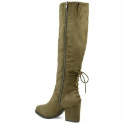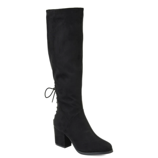 Change it up with the Leeda boot by Journee Collection. This adorable heeled boot features a lace-up detail in the back with a bow to finish it off. There is also a stretch gore on the side as needed. You’ll look fabulous in this beautiful faux suede heeled boot.