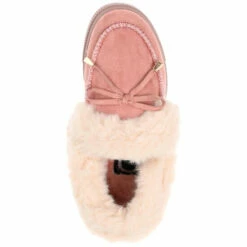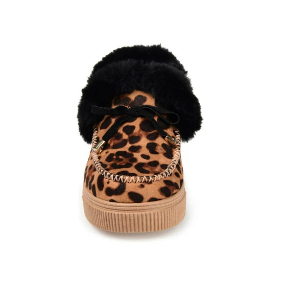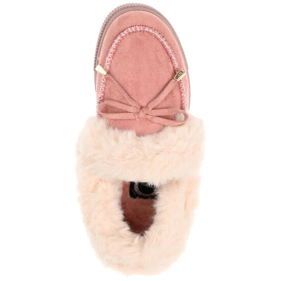 We designed this lounge friendly slipper with a bow tie accent and fluffy faux fur trim for a playful twist. The Midnight by Journee Collection is a moc-toe vegan suede design lined with a 4 mm Tru Comfort Foam footbed for a cozy fit. A thick rubber sole provides durability and allows this soft silhouette to last.