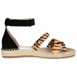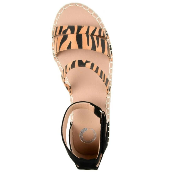 Contemporary style can be all yours in the Rochelle by Journee Collection. Instantly add something extra to your looks with the two-tone straps and espadrille details on these everyday sandals. A looped hook at the ankle secures the fit and a 4 mm Tru Comfort Foam insole grounds this look.