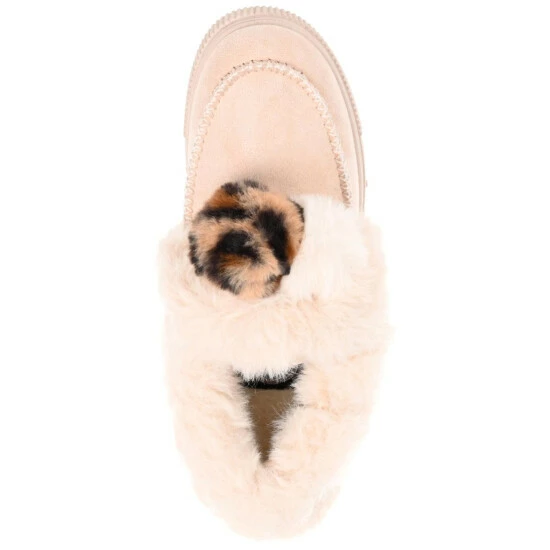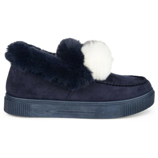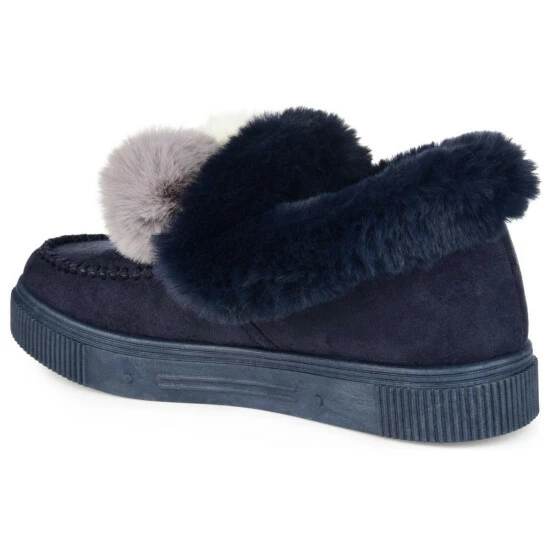 The best indoor-outdoor moccasins ever with soft synthetic fur trim and warm vegan suede uppers. The Sunset by Journee Collection is moc-toe slipper detailed with exposed stitching for a western look and pom-pom accents. A 4 mm Tru Comfort Foam footbed provides extra comfort, and a thick rubber outsole makes the design wearable outside of the house.