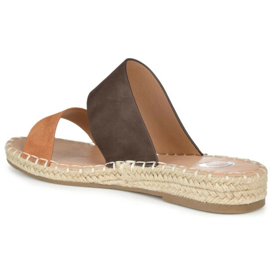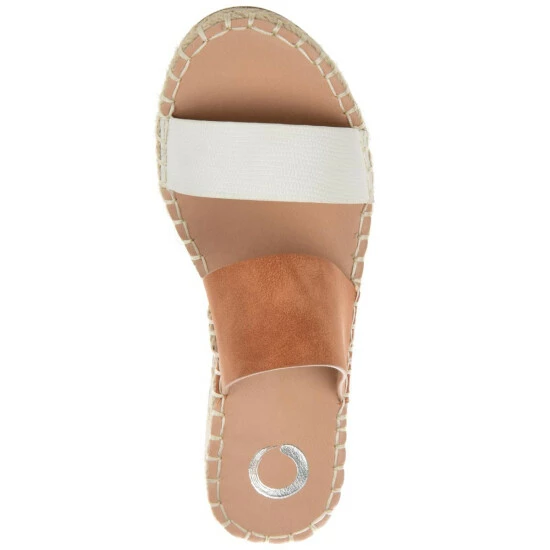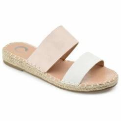 Perfect for beach days, quick errands, and everything in-between, the Suzzie by Journee Collection. These dual strap slides are effortlessly cool with two-tone details and whipstitch trim. A tiny sliver wedge heel wrapped in braided espadrille and a 4 mm Tru Comfort Foam footbed ground the look.