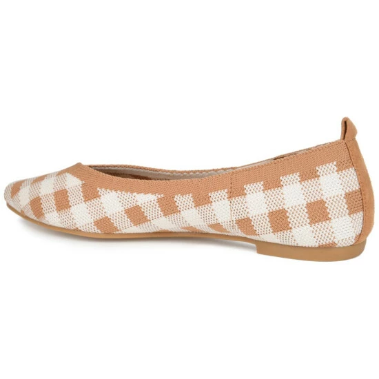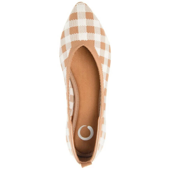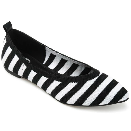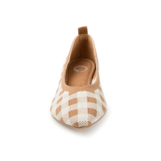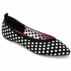 A retro print adds a lively touch to this stretchy knit fabric flat. The Tayleen by Journee Collection is a pointed-toe silhouette detailed with a sweetheart shaped topline for a feminine look. A 4 mm Tru Comfort Foam footbed finishes this style for an infinitely wearable design.