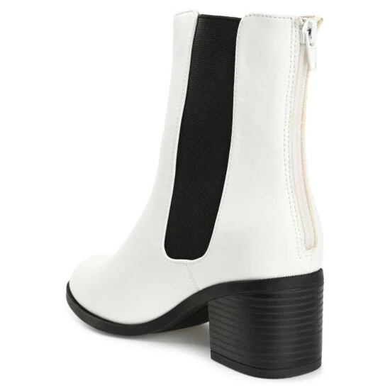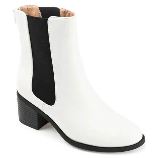 From your little black dress to your comfiest cargos, the Tayshia bootie by Journee Collection truly looks good with everything. This classic Chelsea silhouette is easy and comfortable with a back zipper entry and a 4mm Tru Comfort Foam™ insole. Luxe vegan leather, a stacked block heel, and stretch gore details enhance the design. At Journee Collection, our booties will give you that comfortable yet stylish look, perfect for when you’re in the office all the way to a fun night out with the girls.