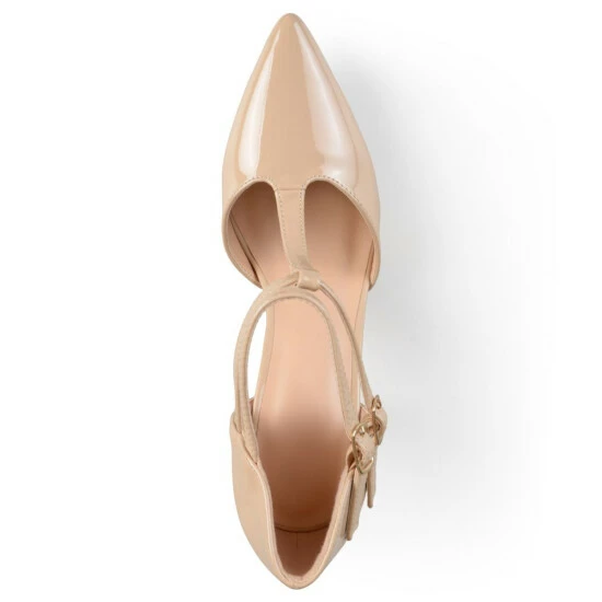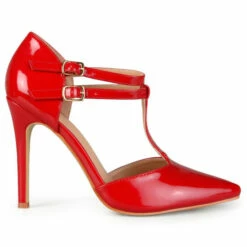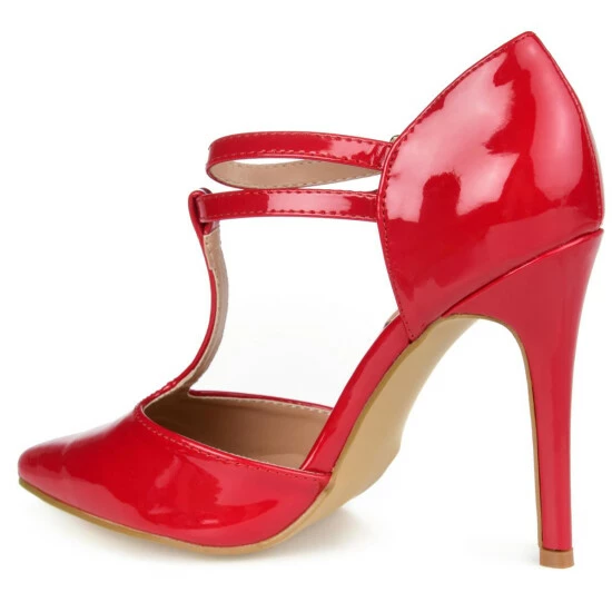 Show off stunning style in shiny t-strap pumps by Journee Collection. These sleek cut-out pumps feature premium faux leather uppers with a lustrous patent finish and a modern double t-strap design.