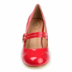 Show off classic style in Mary Jane pumps by Journee Collection. These classic pumps feature faux leather uppers and highlight a double strap design with dainty buckle accents across the tops of the foot.