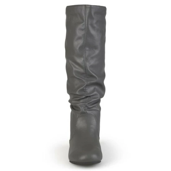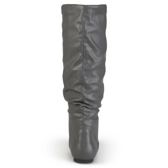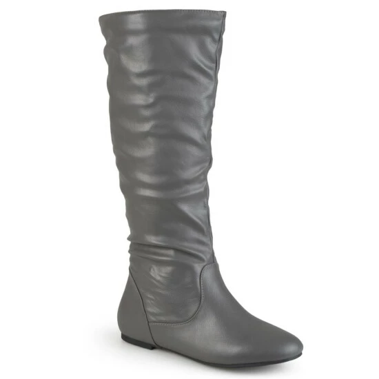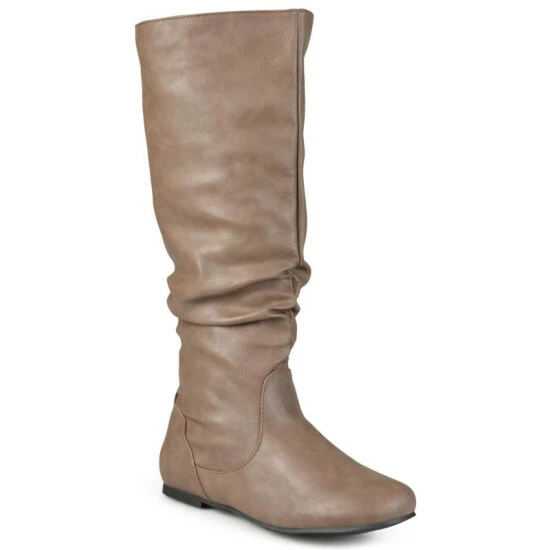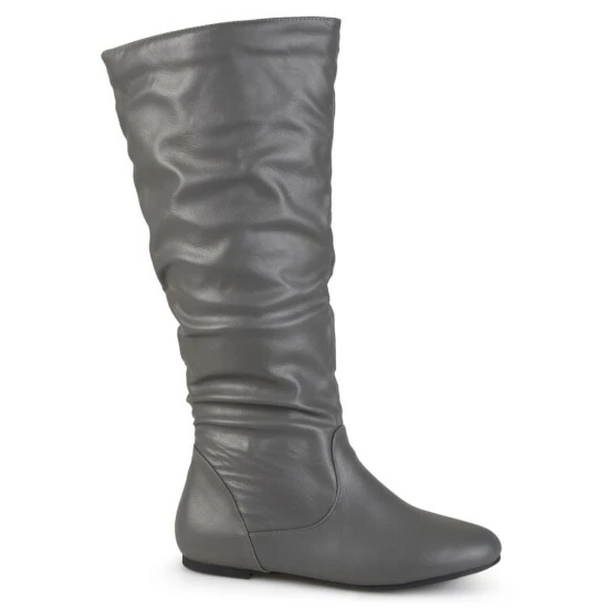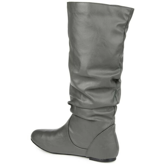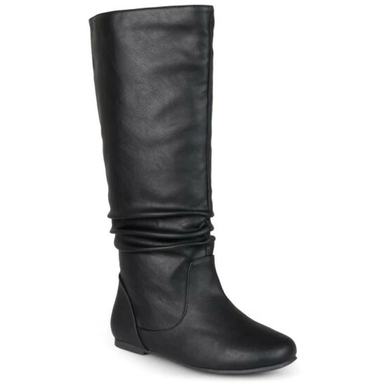 Show off classic style in women’s flat riding boots by Journee Collection. These wide calf boots feature faux leather with a subtle slouchy design and extra room in the calves to create a wide-calf boot style.