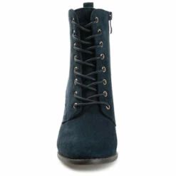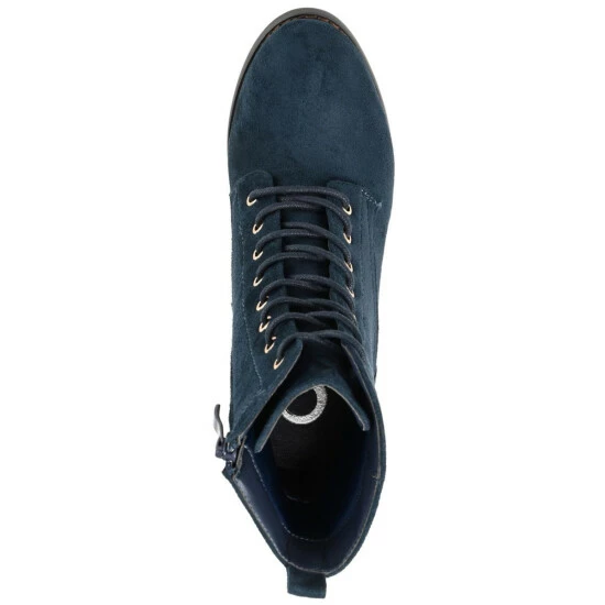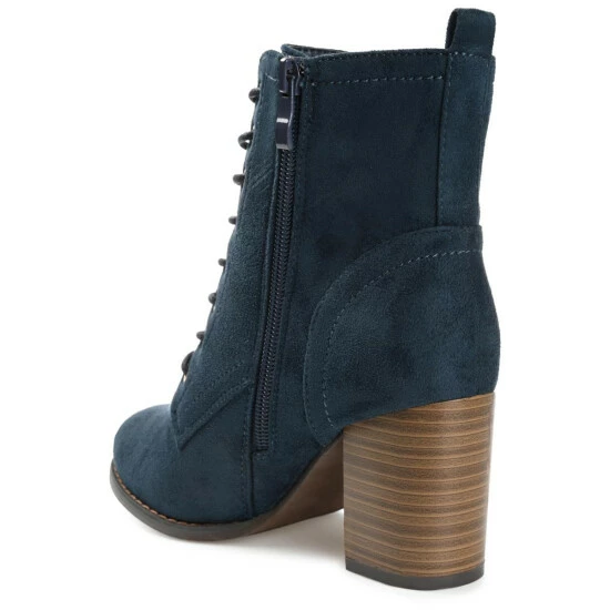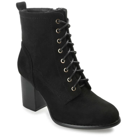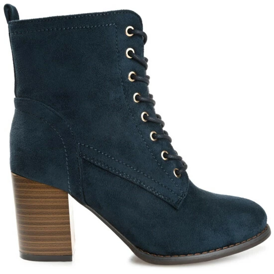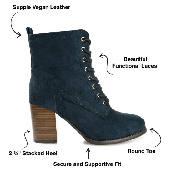 Our take on the military bootie, the Baylor by Journee Collection. This cool style features soft vegan leather uppers that rise above the ankles, accented by a classic lace-up closure. A stacked block heel, wide-width footbed, and padded insole perfect the design.