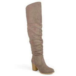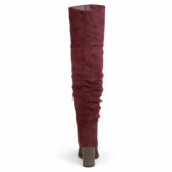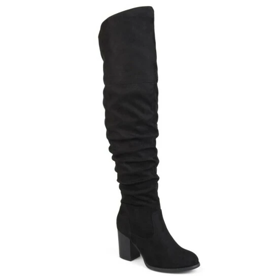 Go bold with the Kaison thigh-high boots by Journee Collection. A stacked block heel adds a walkable and flattering lift to the design. Soft vegan leather shapes this design, and an inside zipper offers easy entry.