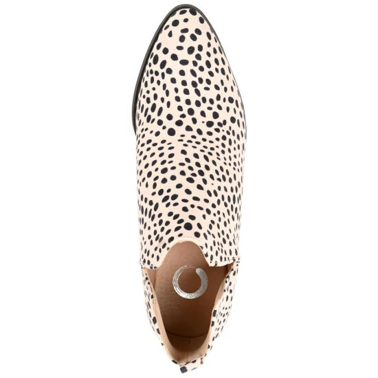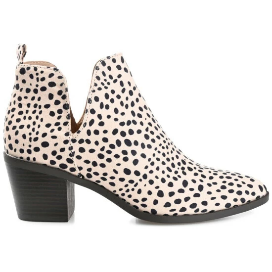 Sleek and simple. Journee Collections Lola bootie has an almond-toe shape, detailed with vegan leather uppers and a padded footbed. This no-fuss silhouette is finished with a handy pull tab at the heel, V cutouts at the ankles, and a wide-width footbed.