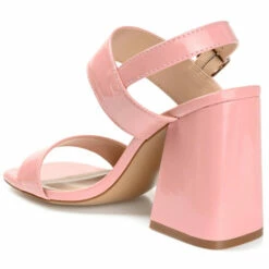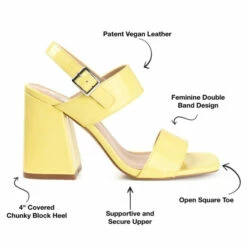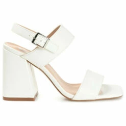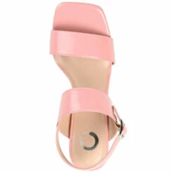 Instantly add a glam finish to any look with the Adras by Journee Collection. This medium width, block-heeled strappy sandal features patent vegan leather uppers and an open square toe for a retro look. A padded footbed completes the design for extra comfort.