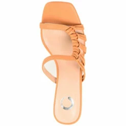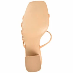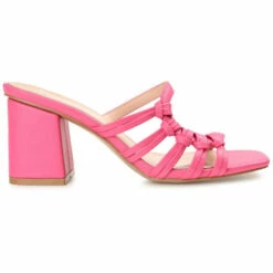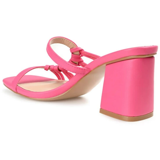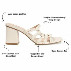 A slip-on heel you didn’t’ know you needed, the Emory by Journee Collection. This sleek, medium width, slip-on style features soft vegan leather and a padded footbed for a supportive fit. Asymmetrical knotted straps and a covered block heel finish this modern look.