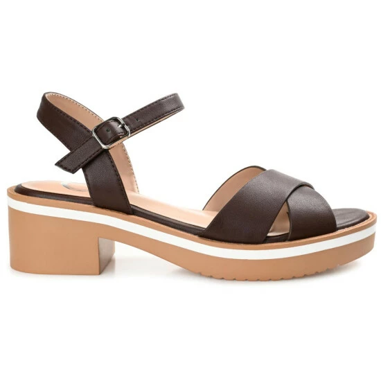 The heeled sandal you’ll want to wear every day, the Hilaree by Journee Collection. This summery style features a lightweight block heel and padded insole for comfort and ease. The styling is perfected with crisscross straps and a white stripe around the sole.