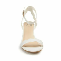 Make an entrance in the Loucia by Journee Collection. This vegan leather toe strap sandal is trimmed with scalloped details for a retro vibe. A covered wedge heel lined with a padded footbed and a buckled ankle strap finish this sassy look.