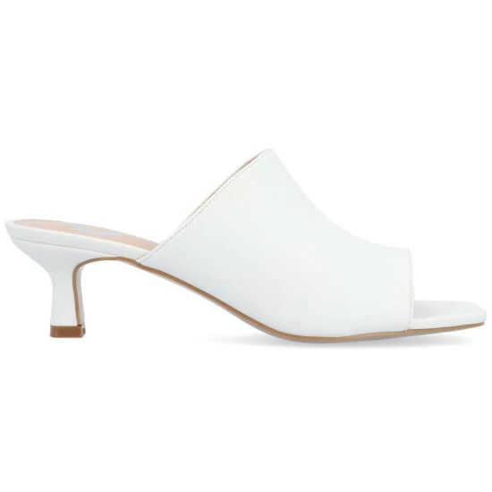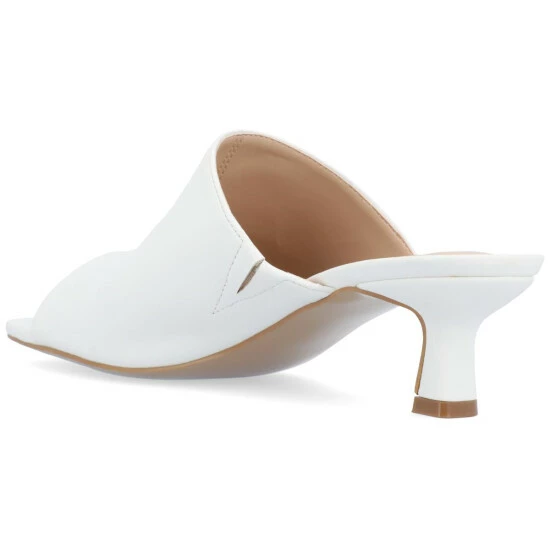 With the Mercerr heels by Journee Collection, you can instantly elevate your favorite outfits. This slip-on silhouette features soft vegan leather uppers detailed with an open square toe. A padded footbed and 2-inch kitten heel finish the design for a comfortable but elevated fit. At Journee Collection, our pump styles will let you go from a fun night out with the girls to kicking back and relaxing at the end of the night without any trouble.