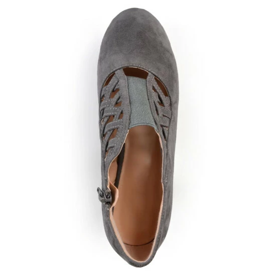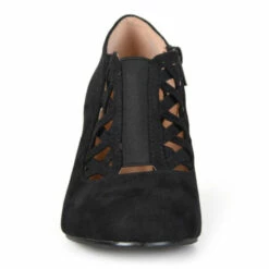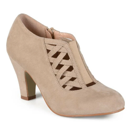 Step into sizzling style with crisscross heeled booties by Journee Collection. These stylish shoes highlight premium faux suede uppers in a dainty bootie style. Crisscross straps are highlighted across the vamps, while small chunky heels finish the look.
