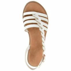 - Buckle closure, ankle strap, braided diagonal detail, multi-strap toe design, buckle details