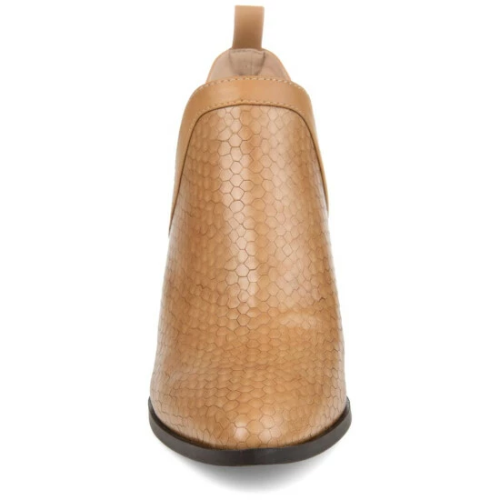 Step into a beautifully classic bootie with the Terri bootie by Journee Collection. This bootie features a gorgeous textured design with an almond toe shape. The pull on style creates easy access and the v cut slits make for a beautiful feel.