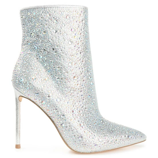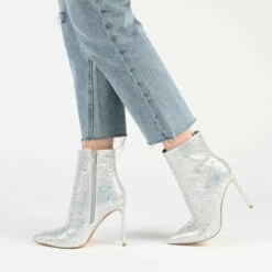 Add some glam to your ensemble with the shimmering Alexis bootie by Journee Collection. These fabulous stiletto heel booties are styled with a sassy pointed toe and man-made uppers covered in rhinestone details. With a 4 mm Tru Comfort Foam footbed lining the insole, you’ll always feel comfy in these. At Journee Collection, our booties will give you that comfortable yet stylish look, perfect for when you’re in the office all the way to a fun night out with the girls.