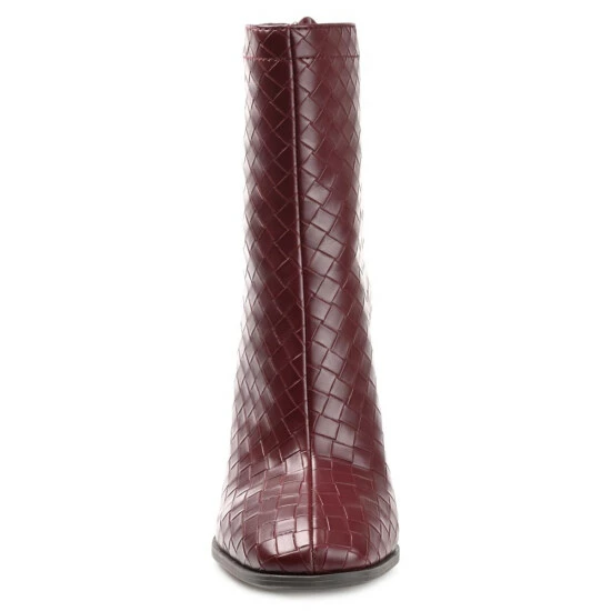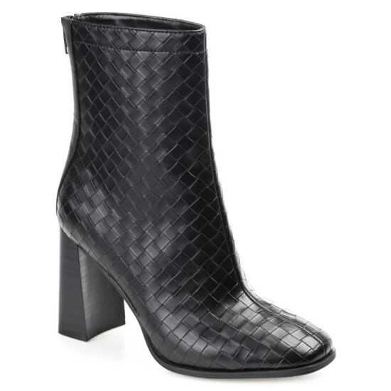 A look borrowed from the runway, the Brielle by Journee Collection. These modern booties feature woven textured leather uppers detailed with a square-toe and chunky block heel. A 4 mm Tru Comfort Foam™ insole makes them a breeze to walk in, and a back zipper detail at the ankle makes them easy to pull on.