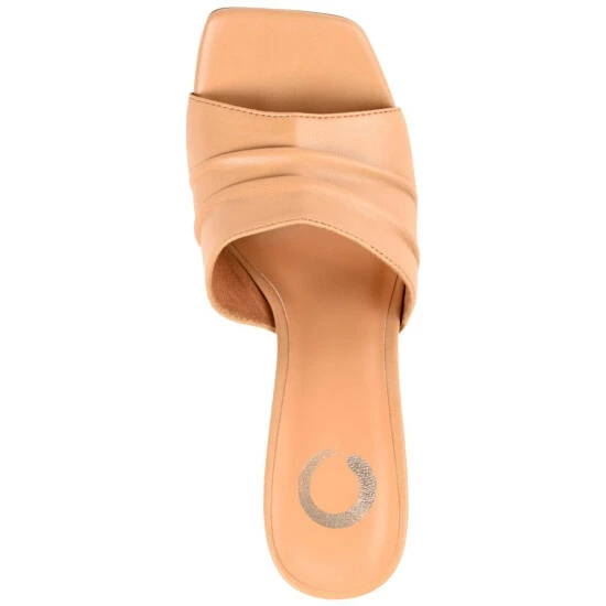 An attention-getting style you’ll want to wear every day, the Camber by Journee Collection. This slip-on heel features vegan leather uppers detailed with ruching and an open toe. A super supportive 4 mm Tru Comfort Foamโข footbed finishes the design for a comfortable but elevated fit.