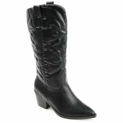 A classic cowgirl bootie reimagined for the modern fashionista, the Chantry by Journee Collection. This pointed-toe boot with western stitch details and soft vegan leather is the most stylish way to embrace your country roots. A block heel and a 4 mm Tru Comfort Foamโข footbed add comfortable height to this mid-calf design. At Journee Collection, our boot styles will have your outfit looking even better than before. They will give you that finishing touch that will have your outfit looking straight out of a magazine.